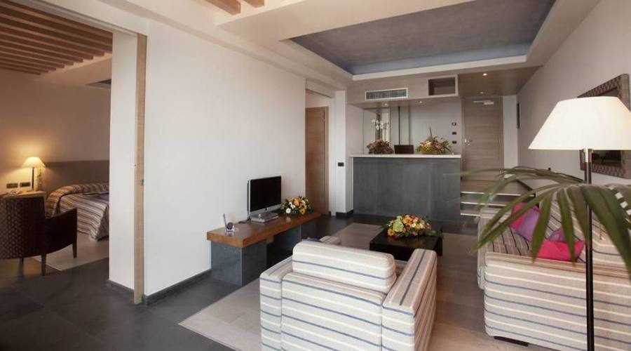 Nelle stanze prevale l'equilibrio tra design contemporaneo e comfort. L’utilizzo di materiali tradizionali e innovativi, come il tatami, la pietra lavica ed il legno d’ulivo, creano sorprendenti armonie cromatiche e conferiscono all'ambiente una calda e intima atmosfera.